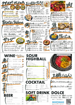 | 営業時間 | 月~金 ディナー17:30~23:00 (フードLO22:00/ドリンクLO22:30) 土日祝 13:00~23:00 (フードLO22:00/ドリンクLO22:30) |